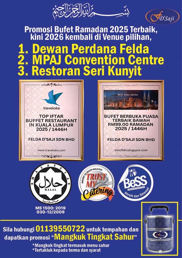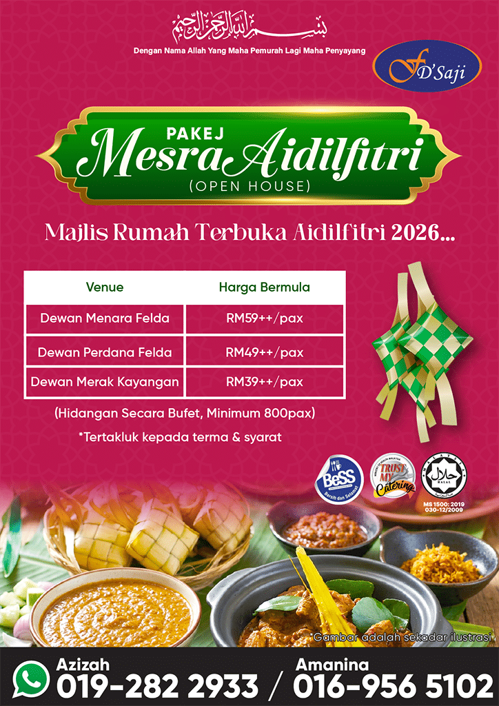 Jadikan visi anda menjadi kenyataan dengan kepakaran dan pengalaman Felda D’Saji melebihi 30 tahun dalam pengurusan majlis. Dari konsep hingga ke pelaksanaan, kami memberikan perhatian yang teliti kepada setiap perincian dan memastikan majlis anda berjalan lancar. Sama ada anda merancang majlis perkahwinan, majlis korporat, atau konvokesyen, pasukan kami berdedikasi untuk menjadikan majlis anda sebuah kenangan penuh bermakna.
