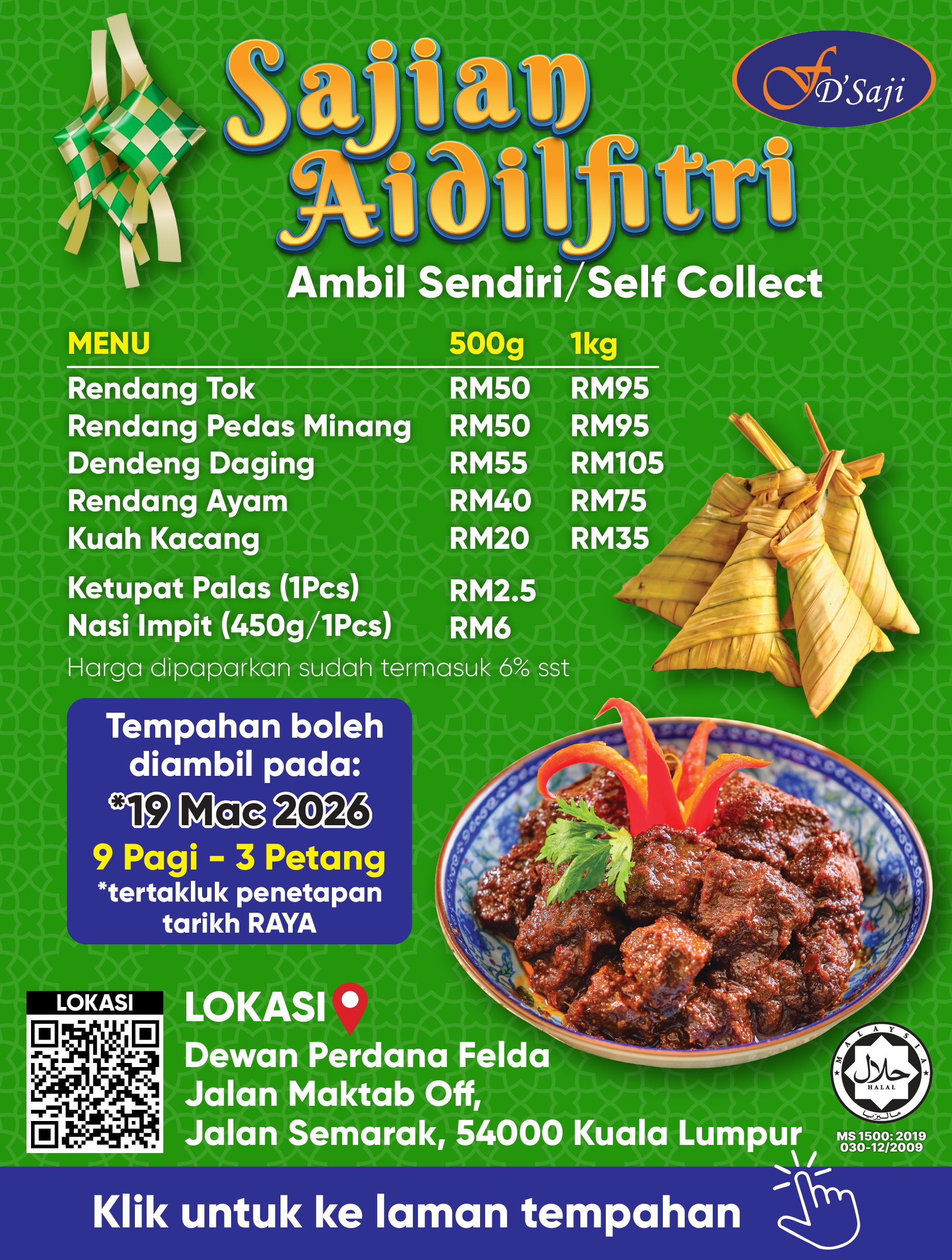 Jadikan visi anda menjadi kenyataan dengan kepakaran dan pengalaman Felda D’Saji melebihi 30 tahun dalam pengurusan majlis. Dari konsep hingga ke pelaksanaan, kami memberikan perhatian yang teliti kepada setiap perincian dan memastikan majlis anda berjalan lancar. Sama ada anda merancang majlis perkahwinan, majlis korporat, atau konvokesyen, pasukan kami berdedikasi untuk menjadikan majlis anda sebuah kenangan penuh bermakna.